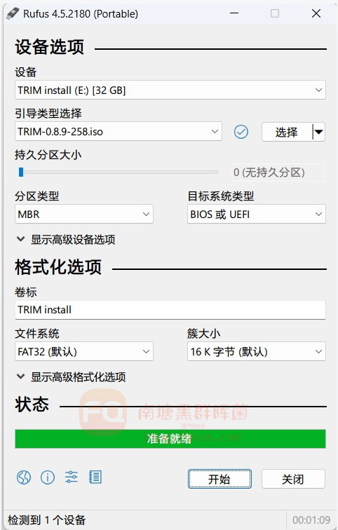 进度条显示 “准备就绪” 即为完成,可拔出 U 盘。