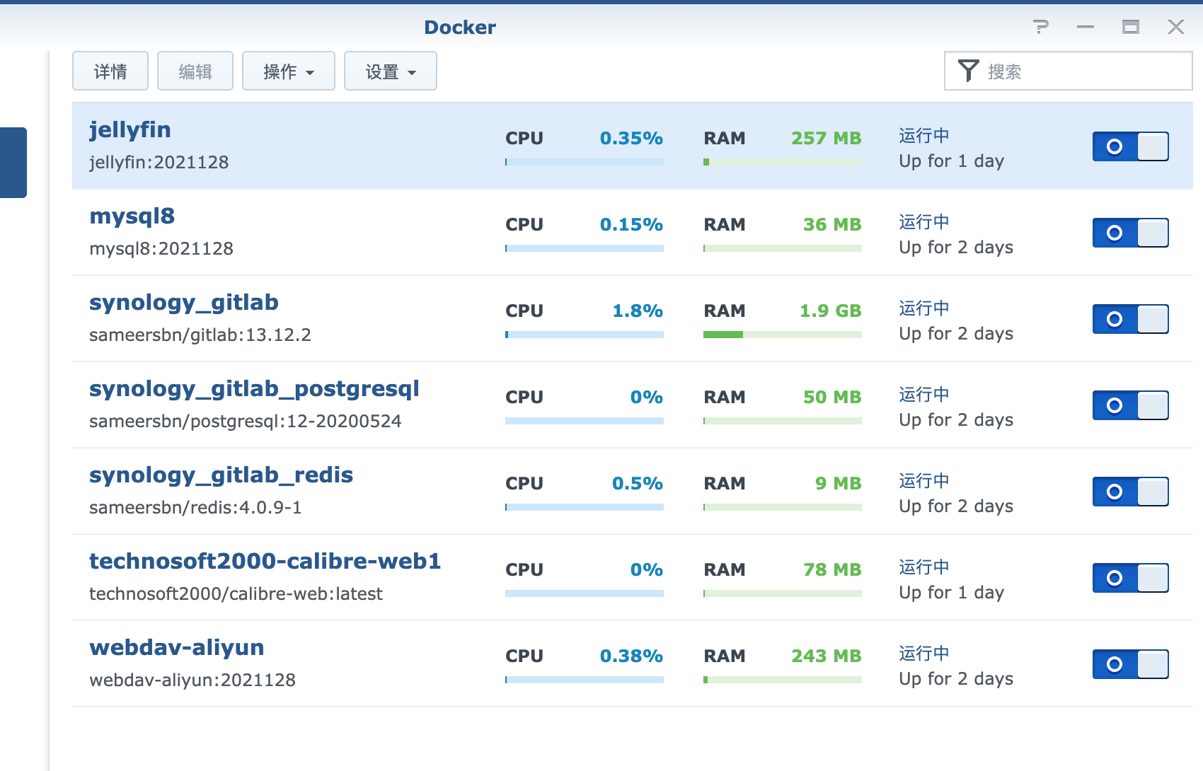 这三块内容其实有重叠部分,那就是docker文件夹,这个文件夹其实完整保留了docker的容器数据,包含镜像文件,但是并不保留容器实体,也就是群晖gitlab的所有数据其实都保存在这里,唯一不保存的只是docker容器的一些端口映射或者环境变量而已,鉴于这一点,如果我们容器参数不是默认的,我们只需在新的硬盘上重新运行容器配置下容器的参数即可,其他什么都不需要做。