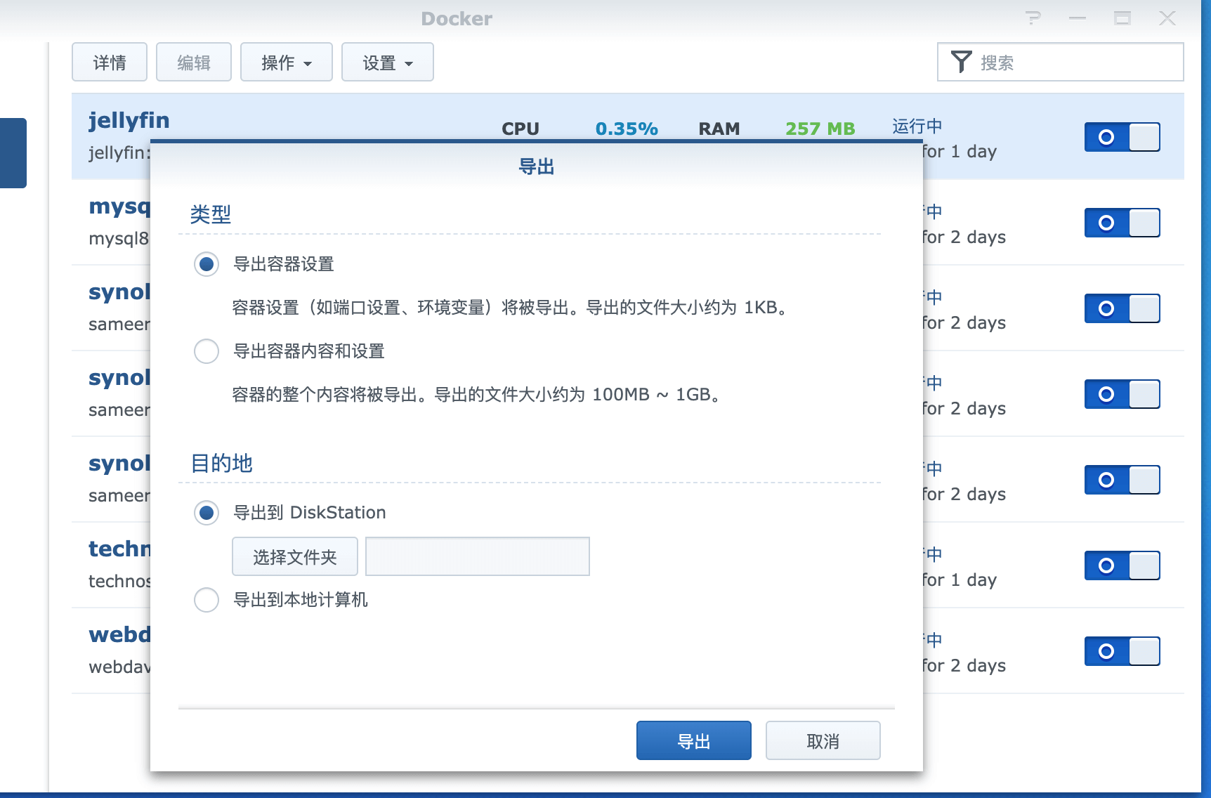 群晖自带了一款非常不错的软件,hyper backup,它可以备份所有系统配置、所有的共享存储文件夹,主要套件配置信息(包括moments,node station,office等等),所以一旦备份了所有文件夹,也就备份了docker容器中的数据,在新的硬盘中只要重新安装docker,运行容器并和原来的配置保持一致就可以几乎完美的备份还原,剩下的就是时间问题。