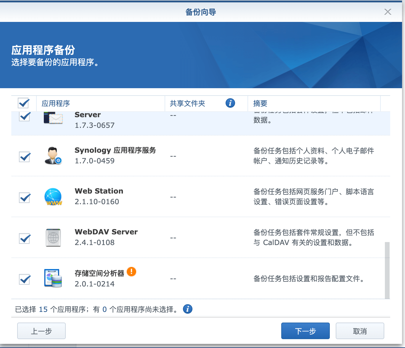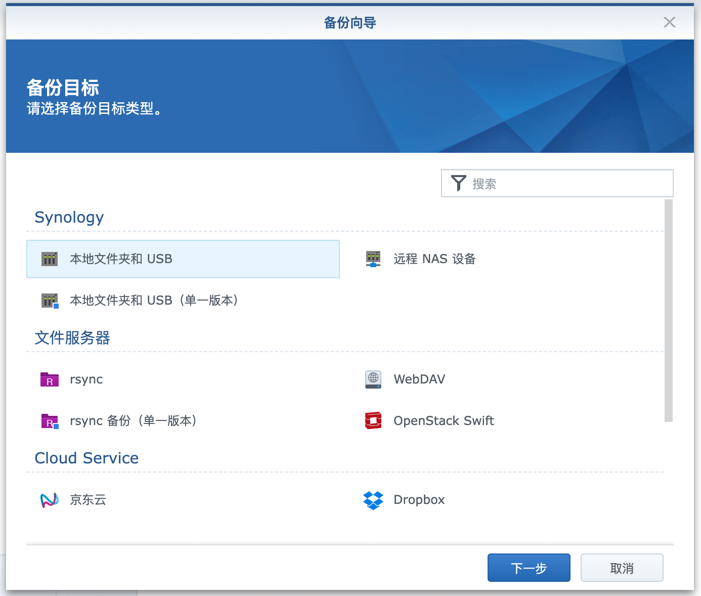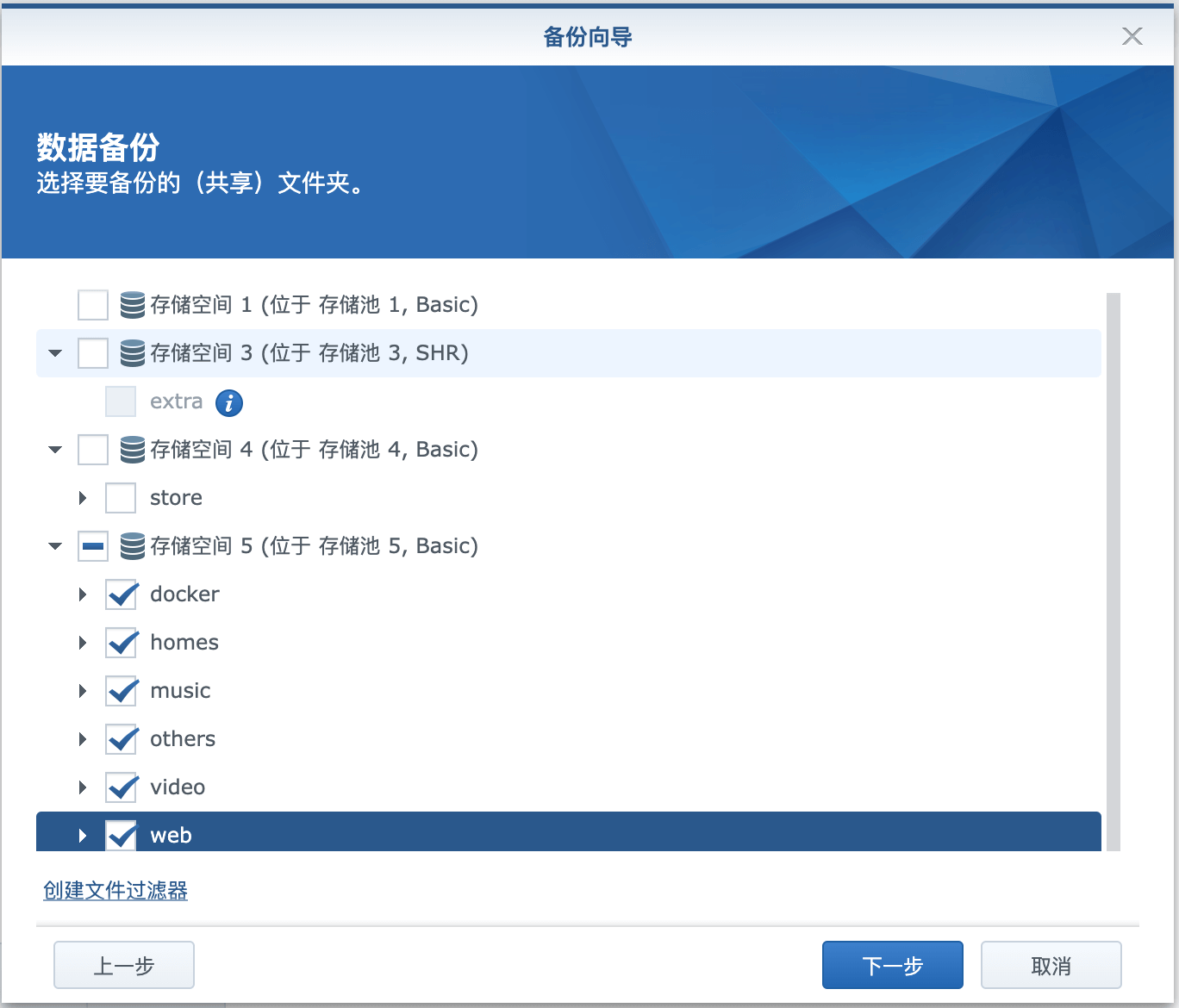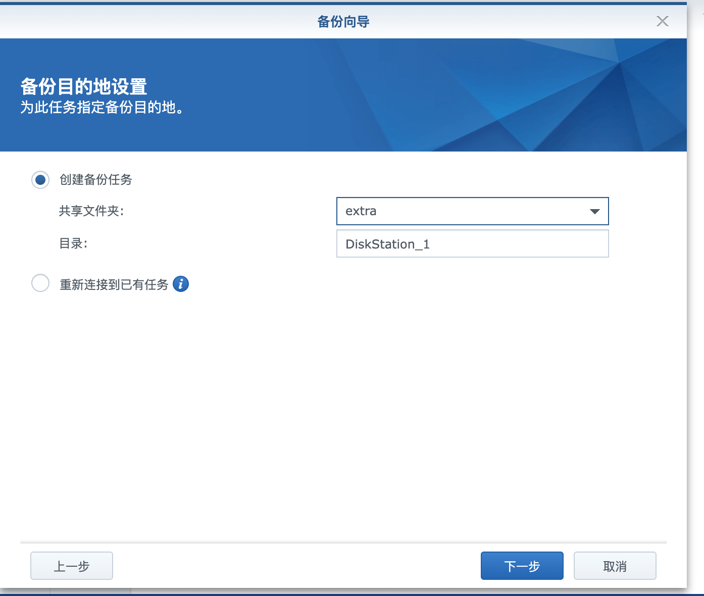下面进入hyper backup套件执行备份,备份要选择一块硬盘的一个文件夹