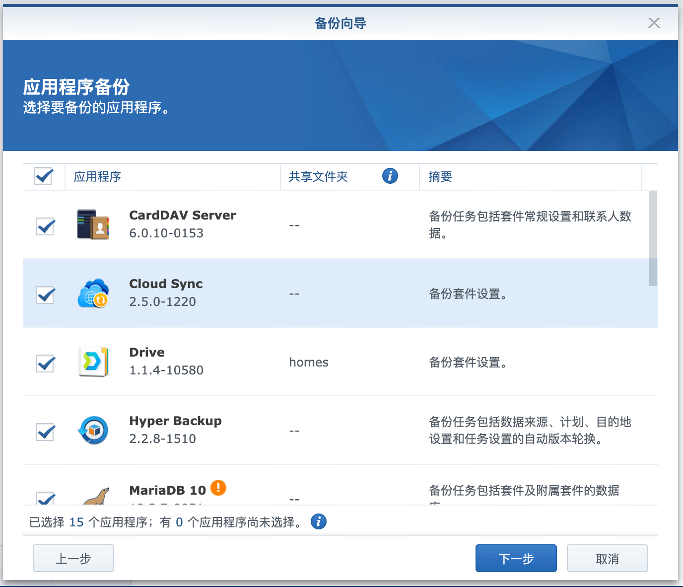 进入套件中心安装套件hyper backup,然后执行还原操作,还原需要等待一段时间,还原后,进入套件中心,所有套件执行修复,无法修复的卸载重装。做完这一切,docker的容器该导入的导入,该重新运行配置的重新运行,数据都在docker文件夹下,所以重新从镜像执行或者导入之前备份的容器都不会丢失数据,gitlab套件重新安装运行。cloud sync重新配。