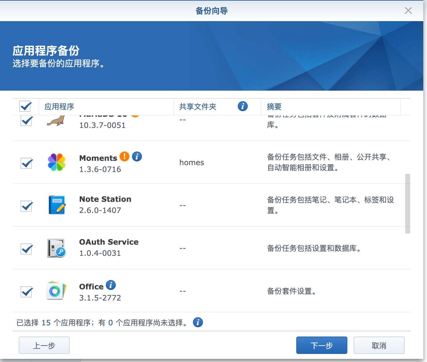 一些比较重要的套件如moments、node station、office、audio station 、video station 只要执行了还原,那重新安装后,就可以做到完美还原,数据也都不会丢失。经过以上操作就基本上对坏道硬盘做了完美迁移。