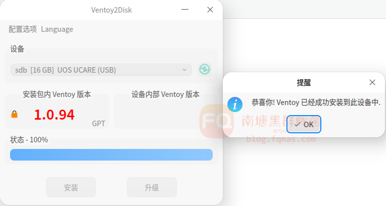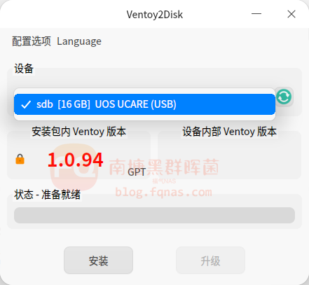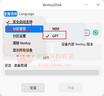 注意:在ventoy配置选项中,分区类型请务必选择GPT分区格式(支持UEFI启动,64位系统必须)。